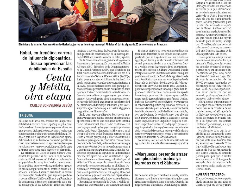 Por su interés, reproducimos la tribuna publicada por Carlos Echeverría Jesús, director del Observatorio de Ceuta y Melilla y profesor de Relaciones Internacionales de la UNED, […]