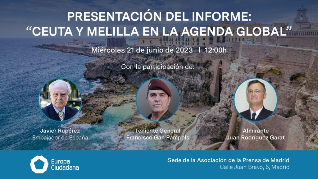 El próximo miércoles 21 de junio, a las 12 de la mañana, en la sede de la Asociación de la Prensa de Madrid, el think tank Europa Ciudadana presentará el informe ‘Ceuta y Melilla en la agenda global’, que analiza cómo ambas ciudades autónomas han ido ganando peso en la escena internacional.